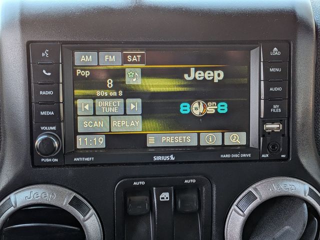 Auto-Dimming Mirror w/Reading Lamp, Black 3-Piece Hard Top, Connectivity Group, Dual Top Group, Front 1-Touch Down Power Windows, Power Convenience Group, Power Heated Mirrors, Power Locks, Remote Keyless Entry, Remote USB Port, Security Alarm, Tire Pressure Monitoring Display, Uconnect Voice Command w/Bluetooth, Vehicle Information Center, Willys Wheeler Package.