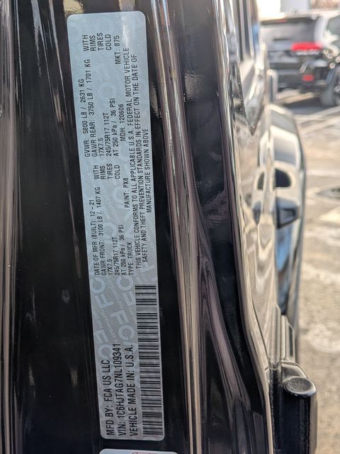 110 MPH Vehicle Max Speed Calibration, 115V Auxiliary Power Outlet, 400W Inverter, 8.4" Radio & Premium Audio Group, 8.4" Touchscreen Display, Air Conditioning w/Auto Temperature Control, Alpine Premium Audio System, Apple CarPlay, Auto-Dimming Rear-View Mirror, Automatic Headlamps, Black 3-Piece Hard Top, Body Color Fender Flares (2-Piece), Cold Weather Group, Console Bin Task Light, Convenience Group, Daytime Running Lamp System, Deep Tint Sunscreen Windows, Emergency/Assistance Call, For Details, Visit DriveUconnect.com, For More Info, Call 800-643-2112, Front 1-Touch Down Power Windows, Google Android Auto, GPS Navigation, HD Radio, Heated Front Seats, Heated Steering Wheel, Integrated Center Stack Radio, Integrated Voice Command w/Bluetooth, Leather Wrapped Steering Wheel, Media Hub w/2 Charge Only USBs, Normal Duty Plus Suspension, Off-Road Info Pages, Popular Equipment Package, Power Heated Mirrors, Power Tailgate Lock, Quick Order Package 24S Sport S, Radio: Uconnect 4C Nav w/8.4" Display, Remote Keyless Entry, Security Alarm, SiriusXM Satellite Radio, SiriusXM Traffic Plus, SiriusXM Travel Link, Speed Sensitive Power Locks, Sport S, Sun Visors w/Illuminated Vanity Mirrors, Trailer Tow Package, Universal Garage Door Opener, USB Host Flip, Wheels: 17" x 7.5" Tech Silver Aluminum.