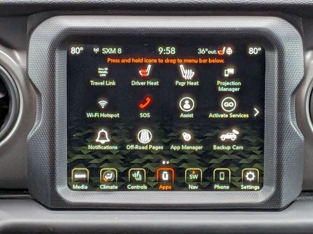 2-Door Passive Entry, Front Door Locks, 35" Tire Suspension, 4-Wheel Drive Swing Gate Decal, 4.56 Rear Axle Ratio, 4G LTE Wi-Fi Hot Spot, 8.4" Radio & Premium Audio Group, 8.4" Touchscreen Display, Air Conditioning w/Auto Temperature Control, Air Filtering, Alpine Premium Audio System, Anti-Lock 4-Wheel Disc Perf Brakes, Anti-Spin Differential Rear Axle, Apple CarPlay, Auto-Dimming Rear-View Mirror, Automatic Headlamps, Black 3-Piece Hard Top, Black Grille, Cluster 7.0" TFT Color Display, Cold Weather Group, Convenience Group, Conventional Differential Front Axle, Dana M210 Wide HD Tube Front Axle, Dana M220 Wide Rear Axle, Daytime Running Lamp System, Deep Tint Sunscreen Windows, Emergency/Assistance Call, Freedom Panel Storage Bag, Front 1-Touch Down Power Windows, Front LED Fog Lamps, Google Android Auto, GPS Antenna Input, GPS Navigation, HD Radio, Heated Front Seats, Heated Steering Wheel, Injection Molded Black Rear Bumper, Integrated Center Stack Radio, Integrated Voice Command w/Bluetooth, LED Headlamp & Fog Lamp Group, LED Premium Reflector Headlamps, Mold In Color Bumper w/Gloss Black, Molded in Color Rubicon Highline Flare, MOPAR All-Weather Floor Mats, No Soft Top, Off-Road Info Pages, Power Heated Mirrors, Premium Wrapped Steering Wheel, Quick Order Package 22W Willys, Radio: Uconnect 4C Nav w/8.4" Display, Rear Window Defroster, Rear Window Wiper/Washer, Remote Keyless Entry, Security Alarm, SiriusXM Satellite Radio, SiriusXM Traffic Plus, SiriusXM Travel Link, Speed Sensitive Power Locks, Sun Visors w/Illuminated Vanity Mirrors, Technology Group, Universal Garage Door Opener, USB Host Flip, Wheel Flare Extensions, Wheels: 17" x 7.5" Black Aluminum, Wheels: 17" x 8" Beadlock Capable, Willys, Willys Hood Decal, Xtreme 35 Tire Package.