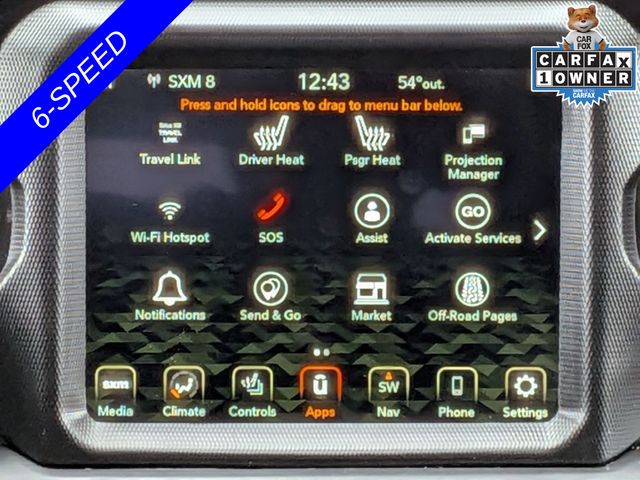 2-Door Passive Entry, Front Door Locks, 4G LTE Wi-Fi Hot Spot, 8.4" Radio & Premium Audio Group, 8.4" Touchscreen Display, Air Conditioning w/Auto Temperature Control, Air Filtering, Alpine Premium Audio System, Altitude Package, Apple CarPlay, Auto-Dimming Rear-View Mirror, Automatic Headlamps, Black 3-Piece Hard Top, Black Interior Accents, Body Color Grille w/Gloss Black Rings, Bridgestone Brand Tires, Cluster 7.0" TFT Color Display, Cold Weather Group, Convenience Group, Deep Tint Sunscreen Windows, Emergency/Assistance Call, Front 1-Touch Down Power Windows, Google Android Auto, GPS Antenna Input, GPS Navigation, HD Radio, Heated Front Seats, Heated Steering Wheel, Heavy Duty Suspension w/Gas Shocks, Integrated Center Stack Radio, Integrated Voice Command w/Bluetooth, MOPAR Hardtop Headliner, Off-Road Info Pages, Power Heated Mirrors, Premium Wrapped Steering Wheel, Quick Order Package 23L Altitude, Radio: Uconnect 4C Nav w/8.4" Display, Remote Keyless Entry, Security Alarm, SiriusXM Satellite Radio, SiriusXM Traffic Plus, SiriusXM Travel Link, Speed Sensitive Power Locks, Sun Visors w/Illuminated Vanity Mirrors, Technology Group, Universal Garage Door Opener, USB Host Flip, Wheels: 18" x 7.5" Gloss Black Aluminum, Wizard Black Instrument Panel Bezels.