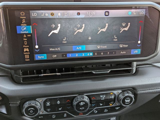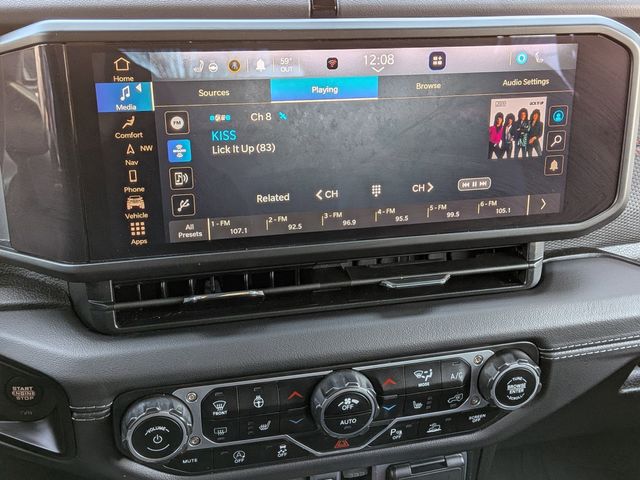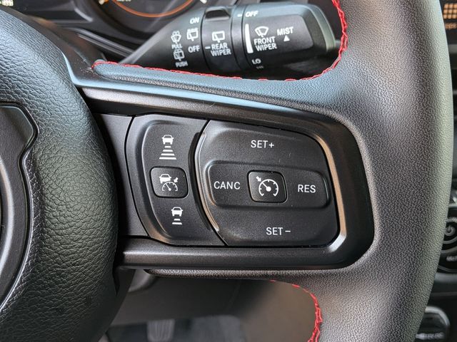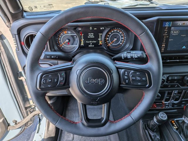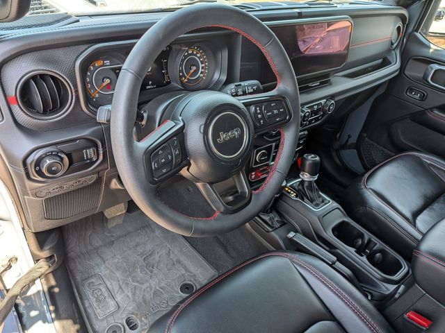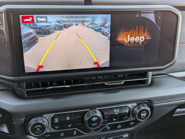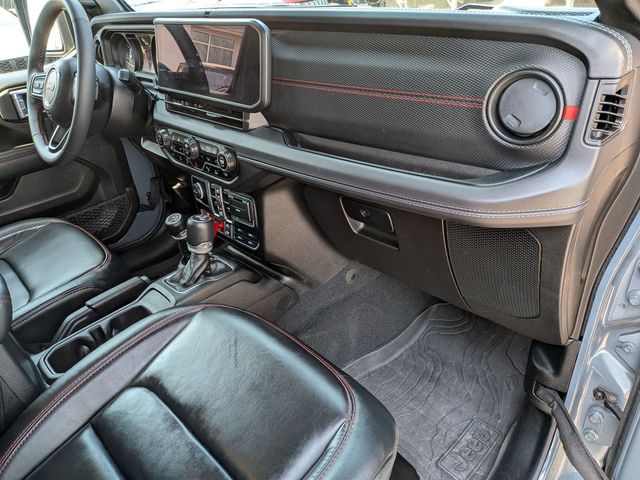 12.3" Touchscreen Display, 4G LTE Wi-Fi Hot Spot, Acoustic Front Seat Area Carpet, Acoustic Laminated Front Door Glass, Alpine Premium Audio System, Apple CarPlay, Auto High Beam Headlamp Control, Auto-Dimming Rear-View Mirror, Auxiliary Switches, Black 3-Piece Hard Top, Blind Spot & Cross Path Detection, Body Color 3-Piece Hard Top, Body Color Rubicon Highline Flare, Class II Receiver Hitch, Connected Travel & Traffic Services, Connectivity - US/Canada, Disassociated Touchscreen Display, Dual Top Group, Freedom Panel Storage Bag, Google Android Auto, GPS Navigation, HD Radio, Heated Front Seats, Heated Steering Wheel, Integrated Center Stack Radio, Integrated Off-Road Camera, Integrated Voice Command w/Bluetooth, MOPAR Hardtop Headliner, Nappa Leather Seats, No Soft Top, ParkSense Rear Park Assist System, Premium Black Sunrider Soft Top w/Dual Top Group, Quick Order Package 24Y Rubicon X, Radio: Uconnect 5 Nav w/12.3" Display, Rear Window Defroster, Rear Window Wiper/Washer, SiriusXM Radio Service, SiriusXM w/360L, Steel Front Bumper, Steel Rear Bumper, Trailer Tow & Aux Switch Group, Trailer Tow Prep Package, Universal Garage Door Opener, Xtreme 35" Tire Package.
