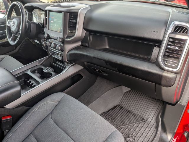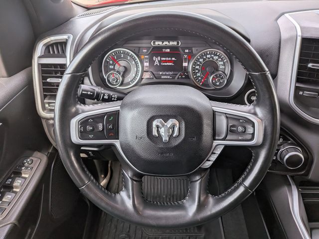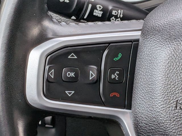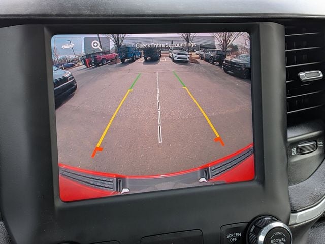 115V Auxiliary Rear Power Outlet, 4G LTE Wi-Fi Hot Spot, 8.4" Touchscreen Display, Air Conditioning ATC w/Dual Zone Control, All Plant-Installed Decals, Apple CarPlay, Auto-Dimming Exterior Driver Mirror, Auto-Dimming Rear-View Mirror, Bed Utility Group, Big Horn Level 2 Equipment Group, Black Exterior Mirrors, Black Interior Accents, Black Premium Power Mirrors, Bluetooth Handsfree Phone & Audio, Body Color Exterior Mirrors, Body Color Front Bumper, Body Color Premium Power Mirrors, Body Color Rear Bumper w/Step Pads, Class IV Receiver Hitch, Cluster 7.0" TFT Color Display, Connectivity - US/Canada, Convex Wide-Angle Mirror Insert, Deluxe Cloth Bucket Seats, Exterior Mirrors Courtesy Lamps, Exterior Mirrors w/Heating Element, Exterior Mirrors w/Supplemental Signals, For Details, Visit DriveUconnect.com, For More Info, Call 800-643-2112, Google Android Auto, Grille Surround 1 Body Color Texture 2 Black, Heated Front Seats, Heated Steering Wheel, Integrated Center Stack Radio, Media Hub w/2 Charge Only USBs, MOPAR 4 Adjustable Cargo Tie-Down Hooks, MOPAR Deployable Bed Step, MOPAR Spray In Bedliner, ParkSense Front/Rear Park Assist w/Stop, Pick-Up Box Lighting, Power 2-Way Driver Lumbar Adjust, Power 8-Way Driver Seat, Power Adjustable Pedals, Power-Folding Mirrors, Radio: Uconnect 5 W w/8.4" Display, Rear Dome w/On/Off Switch Lamp, Rear Power Sliding Window, Rear Window Defroster, Remote Start System, Security Alarm, SiriusXM Radio Service, SiriusXM Satellite Radio, Sport Appearance Package, Sport Decal, Sun Visors w/Illuminated Vanity Mirrors, Universal Garage Door Opener.