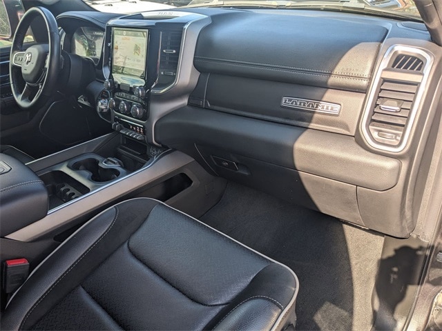 2nd Row In Floor Storage Bins, All Plant-Installed Decals, Auto High Beam Headlamp Control, Auto-Dimming Exterior Driver Mirror, Black Interior Accents, Blind Spot & Cross Path Detection, Body Color Door Handles, Body Color Exterior Mirrors, Body Color Front Bumper, Body Color Premium Power Mirrors, Body Color Rear Bumper w/Step Pads, Convex Wide-Angle Mirror Insert, Exterior Mirrors Courtesy Lamps, Exterior Mirrors w/Heating Element, Exterior Mirrors w/Memory, Exterior Mirrors w/Supplemental Signals, Foam Bottle Insert (Door Trim Panel), Grille Surround 3 Body Color Tex 2 Black, harman/kardon 19 Speaker Premium Sound, Laramie Level II Equipment Group, Leather Trimmed Bucket Seats, ParkSense Front/Rear Park Assist w/Stop, Power-Folding Mirrors, Radio: Uconnect 5 Nav w/8.4" Display, Rain Sensitive Windshield Wipers, Remote Tailgate Release, Sport Appearance Package, Sport Decal, Sport Performance Hood, Twill Film Appliques, Wheels: 20" x 9" Premium Painted w/Inserts, Wireless Charging Pad.