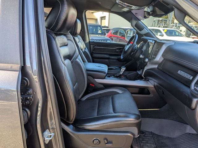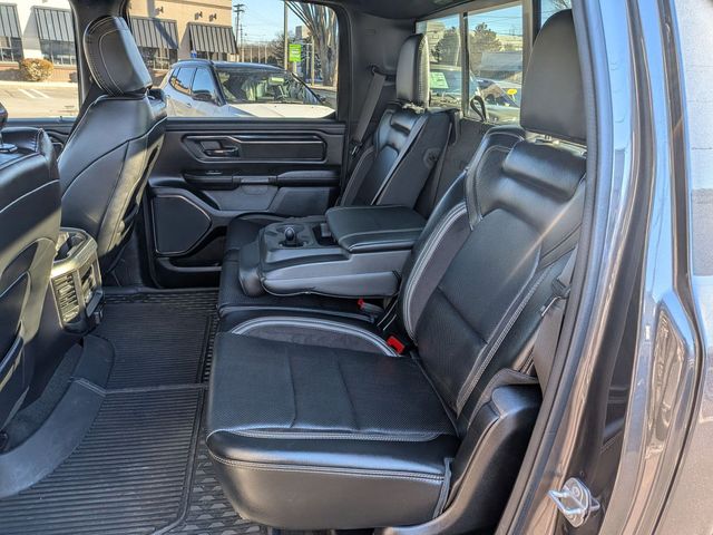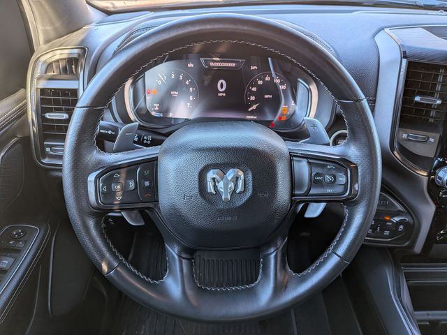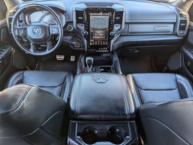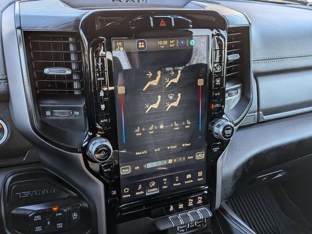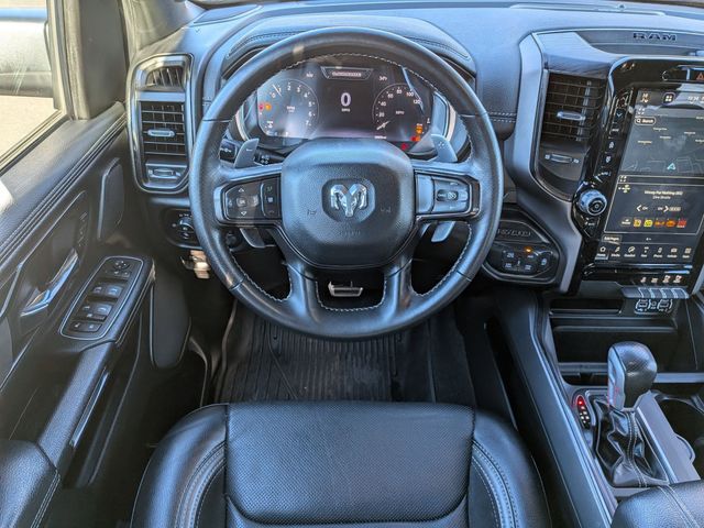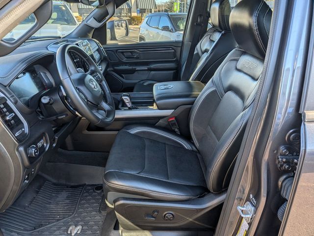 12" Touchscreen Display, 2nd Row In Floor Storage Bins, 3.92 Rear Axle Ratio, 4G LTE Wi-Fi Hot Spot, Accent Color Door Handles, Accent Color Premium Power Mirrors, Apple CarPlay, Auto High Beam Headlamp Control, Auto-Dimming Exterior Driver Mirror, Bed Utility Group, Black Exterior Truck Badging, Black Headlamp Bezels, Black Interior Accents, Black Painted Exterior Mirrors Caps, Blind Spot & Cross Path Detection, Body Color Front Bumper, Body Color Rear Bumper w/Step Pads, Connected Travel & Traffic Services, Connectivity - US/Canada, Convex Wide-Angle Exterior Mirror Insert, Disassociated Touchscreen Display, Dual Exhaust w/Black Tips, Electric Shift-On-Demand Transfer Case, Exterior Mirrors Courtesy Lamps, Exterior Mirrors w/Heating Element, Exterior Mirrors w/Memory, Exterior Mirrors w/Supplemental Signals, Floor Console, Foam Bottle Insert (Door Trim Panel), For Details, Visit DriveUconnect.com, For More Info, Call 800-643-2112, Front Door Accent Lighting, Front LED Fog Lamps, G/T Decal, G/T Package (DISC), Global Telematics Box Module (TBM), Google Android Auto, GPS Antenna Input, GPS Navigation, Grille Surround 3 Black Texture 2 Black, GT Interior Theme, harman/kardon 19 Speaker Premium Sound, HD Radio, Integrated Center Stack Radio, Integrated Voice Command w/Bluetooth, Laramie Level B Equipment Group, Leather Trimmed Bucket Seats, Leather Wrapped Shift Knob, Leather-Wrapped Steering Wheel, Leather/Vinyl Bucket Seats, LED Reflector Headlamps, MOPAR 4 Adjustable Cargo Tie-Down Hooks, MOPAR Bright Pedal Kit, MOPAR Cold Air Intake System, MOPAR Off Road Truck Rubber Floor Mats, MOPAR Spray In Bedliner, Night Edition, ParkSense Front/Rear Park Assist w/Stop, Passive Cold End Exhaust, Performance Pages, Pick-Up Box Lighting, Power-Folding Mirrors, Radio: Uconnect 5 Nav w/12.0" Display, Rain Sensitive Windshield Wipers, RAM Grille Badge - Black, Rear Door Accent Lighting, Rear Power Sliding Window, Rear Underseat Compartment Storage, Rear Window Defroster, Remote Tailgate Release, SiriusXM Radio Service, SiriusXM w/360L, Sport Performance Hood, Steering Wheel Mounted Shift Control, USB Host Flip, Wheels: 22" x 9" Forged Aluminum.