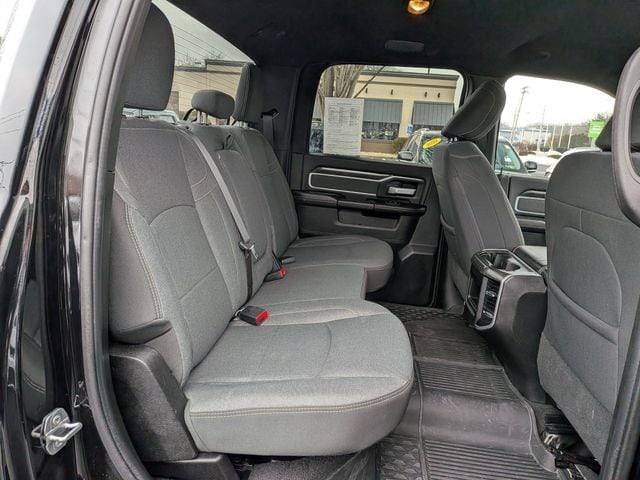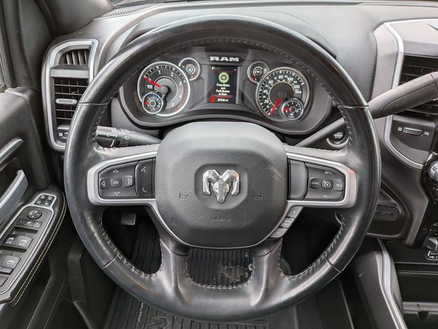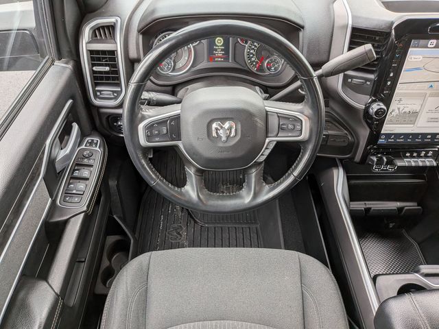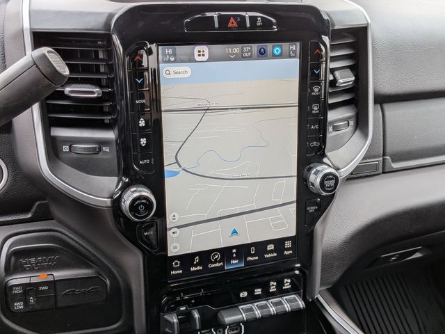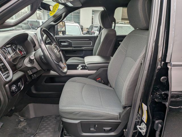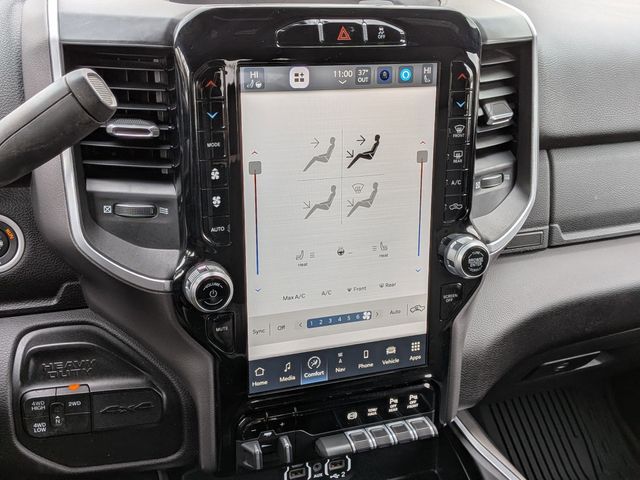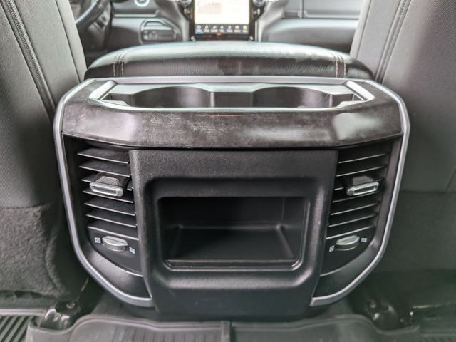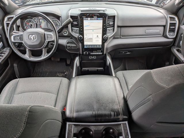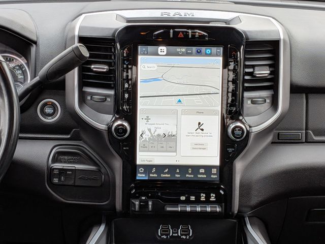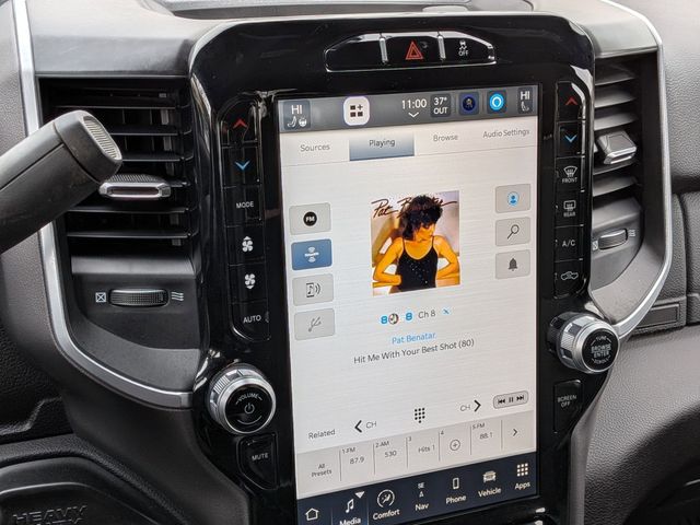 2nd Row In Floor Storage Bins, 4G LTE Wi-Fi Hot Spot, 8.4" Touchscreen Display, Apple CarPlay, Auto Power-Folding Mirrors, Big Horn IP Badge, Black Exterior Mirrors, Black Exterior Truck Badging, Black Headlamp Bezels, Black Interior Accents, Black Ram Head Tailgate Badge, Black Tail Lamp Bezels, Bluetooth Handsfree Phone & Audio, Body Color Door Handles, Body Color Grille Surround, Connectivity - US/Canada, Dual Glove Boxes, Exterior Mirrors Courtesy Lamps, Exterior Mirrors w/Heating Element, Exterior Mirrors w/Supplemental Signals, Foam Bottle Insert (Door Trim Panel), Footwell Courtesy Lamp, For Details, Visit DriveUconnect.com, For More Info, Call 800-643-2112, Forward & Reverse Utility Lights, Front Fog Lamps, Global Telematics Box Module (TBM), Gloss Black Grille Nostrils/Mic, Glove Box Lamp, Google Android Auto, GPS Antenna Input, Heated Front Seats, Heated Seats & Wheel Group, Heated Steering Wheel, Integrated Center Stack Radio, Integrated Voice Command w/Bluetooth, Leather Wrapped Steering Wheel, Level 1 Equipment Group, Locking Lower Glove Box, Mirror Running Lights, Night Edition, Painted Front Bumper, Painted Rear Bumper, ParkSense Front/Rear Park Assist System, Power Adjust Mirrors, Power Adjustable Convex Aux Mirrors, Power Heated Fold Telescope Mirrors, Power Telescoping Mirrors, Premium Cloth 40/20/40 Bench Seat, Protection Group, Radio: Uconnect 5 W w/8.4" Display, Rear Dome w/On/Off Switch Lamp, Selectable Tire Fill Alert, SiriusXM Radio Service, SiriusXM Satellite Radio, Steering Wheel Mounted Audio Controls, Tow Hooks, Wheels: 20" x 8.0" Black Painted Aluminum.