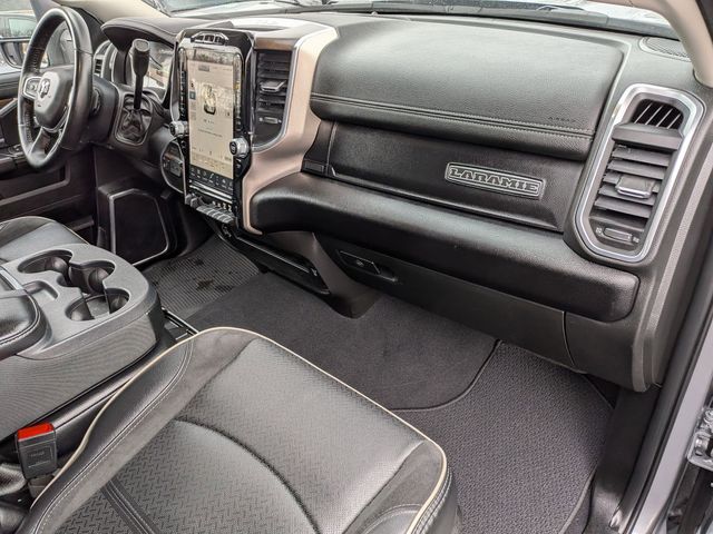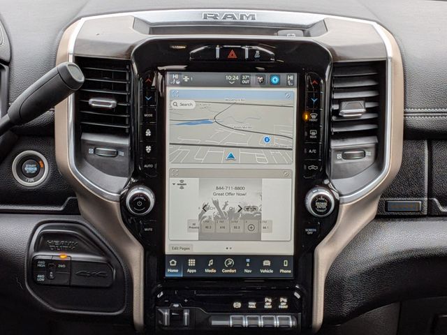 12" Touchscreen Display, 2nd Row In Floor Storage Bins, 4G LTE Wi-Fi Hot Spot, Alexa Built-In, Apple CarPlay, Auto Adjust In Reverse Exterior Mirrors, Auto Dim Exterior Mirror, Auto High Beam Headlamp Control, Auto Power-Folding Mirrors, Auto-Dimming Exterior Passenger Mirror, Blind Spot & Cross Path Detection, Center Hub, Chrome Exterior Mirrors, Connected Travel & Traffic Services, Connectivity - US/Canada, Disassociated Touchscreen Display, Exterior Mirrors Courtesy Lamps, Exterior Mirrors w/Heating Element, Exterior Mirrors w/Memory, Exterior Mirrors w/Supplemental Signals, Foam Bottle Insert (Door Trim Panel), For Details, Visit DriveUconnect.com, For More Info, Call 800-643-2112, Forward & Reverse Utility Lights, Front LED Fog Lamps, Global Telematics Box Module (TBM), Google Android Auto, GPS Antenna Input, GPS Navigation, HD Radio, Integrated Voice Command w/Bluetooth, Laramie Level 1 Equipment Group, LED Reflector Headlamps, LED Tail Lamps, Mirror Running Lights, Off-Road Information Pages, ParkSense Front/Rear Park Assist System, Power Adjust Mirrors, Power Adjustable Convex Aux Mirrors, Power Adjustable Pedals w/Memory, Power Heated Fold Telescopic Mirrors w/Memory, Power Telescoping Mirrors, Radio: Uconnect 5 Nav w/12.0" Display, Rain Sensitive Windshield Wipers, Rear Power Sliding Window, Rear Window Defroster, Remote Tailgate Release, Selectable Tire Fill Alert, SiriusXM Radio Service, SiriusXM w/360L, Trailer Tow Pages, Wheels: 18" x 8.0" Polished Aluminum.