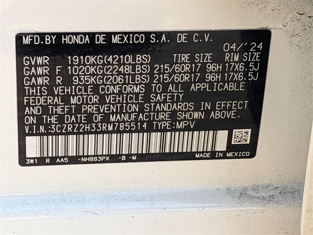 2024 Honda HR-V White Priced below KBB Fair Purchase Price! Odometer is 8543 miles below market average! CARFAX One-Owner.