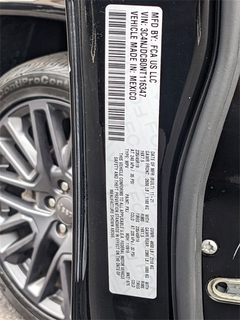 Certified. 2022 Jeep Compass Diamond Black Crystal Pearlcoat Odometer is 4692 miles below market average! CARFAX One-Owner. Clean CARFAX.