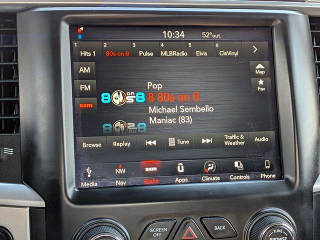 Auto-Dimming Exterior Mirrors, Auto-Dimming Rear-View Mirror, Big Horn Badge, Big Horn Regional Package, Bright/Bright Billets Grille, Class IV Receiver Hitch, Dual Rear Exhaust w/Bright Tips, Electric Shift-On-Demand Transfer Case, Electroluminescent Instrument Cluster, Exterior Mirrors Courtesy Lamps, Exterior Mirrors w/Supplemental Signals, Front Fog Lamps, Glove Box Lamp, GPS Navigation, Leather Wrapped Steering Wheel, LED Bed Lighting, Overhead Console w/Garage Door Opener, ParkSense Rear Park Assist System, Power Heated Fold-Away Mirrors, Power-Folding Mirrors, Premium Cloth 40/20/40 Bench Seat, Quick Order Package 27S Big Horn, Radio: Uconnect 4C w/8.4" Display, Rear Dome w/On/Off Switch Lamp, Remote Start System, Security Alarm, Steering Wheel Mounted Audio Controls, Sun Visors w/Illuminated Vanity Mirrors, Wheels: 20" x 8" Aluminum Chrome Clad.